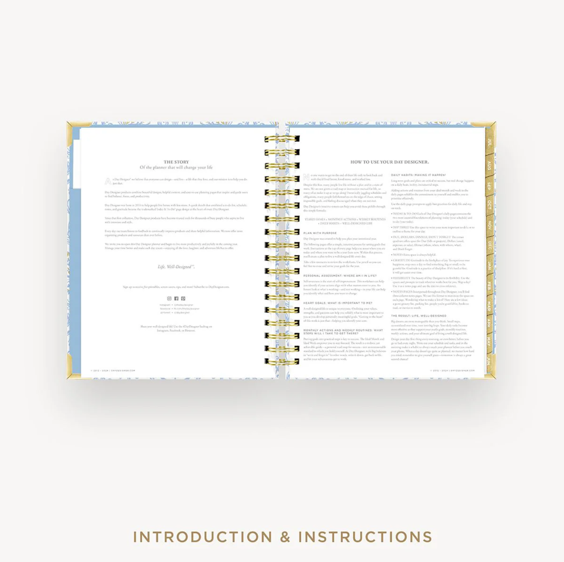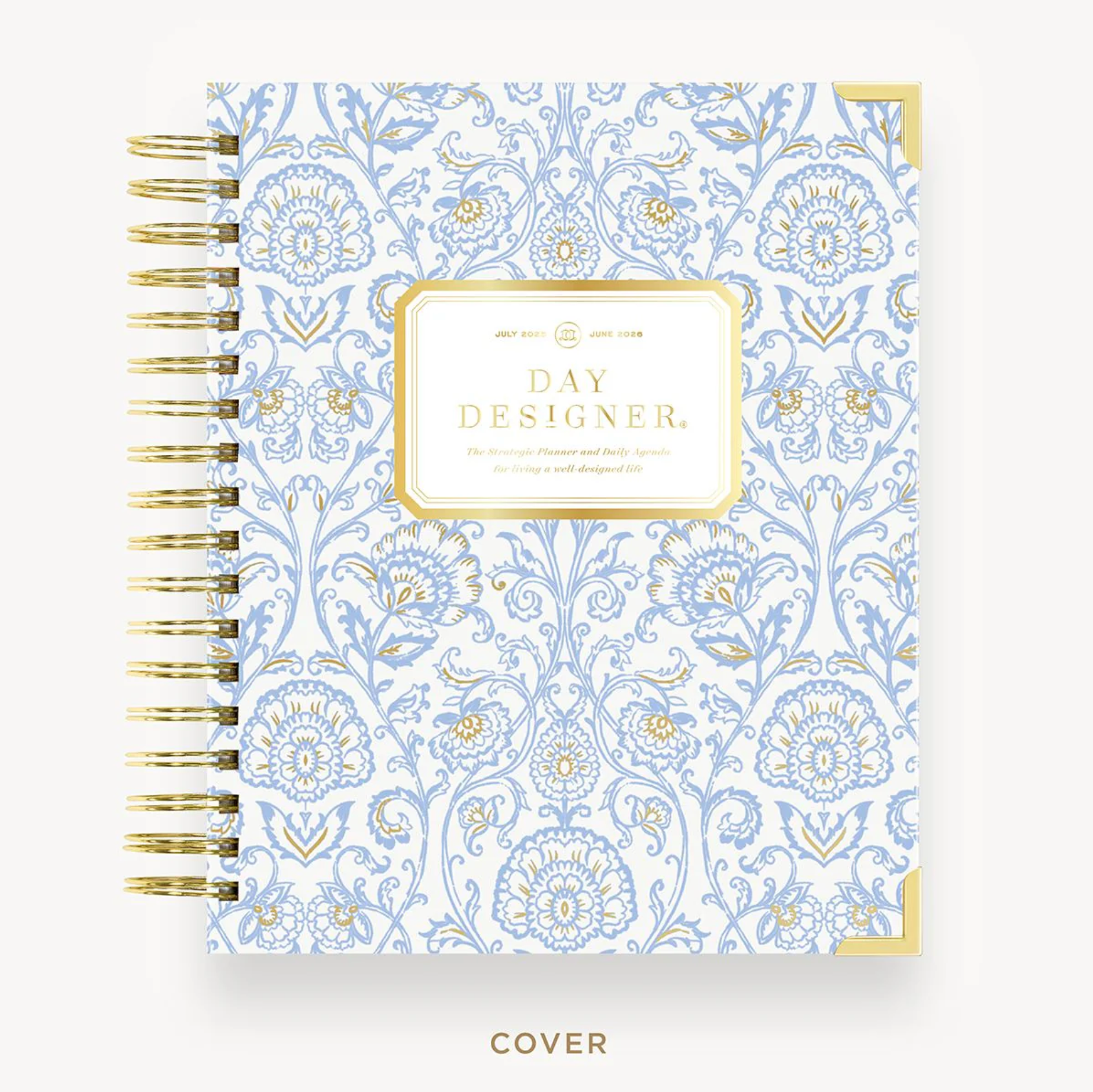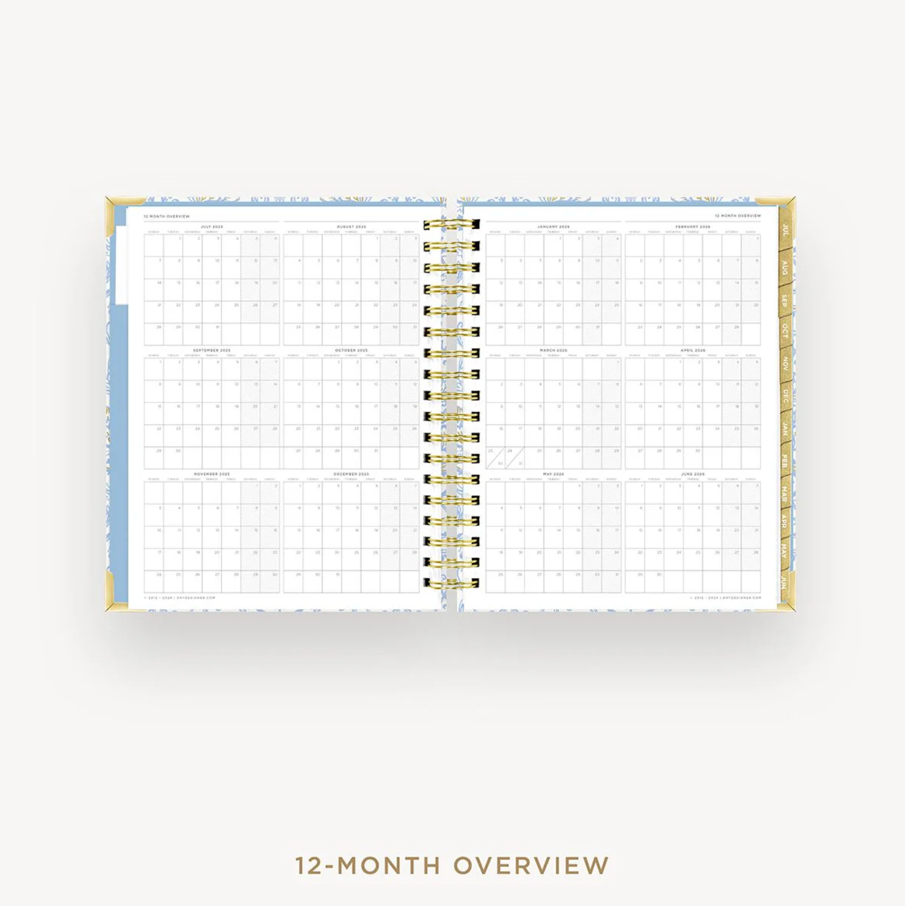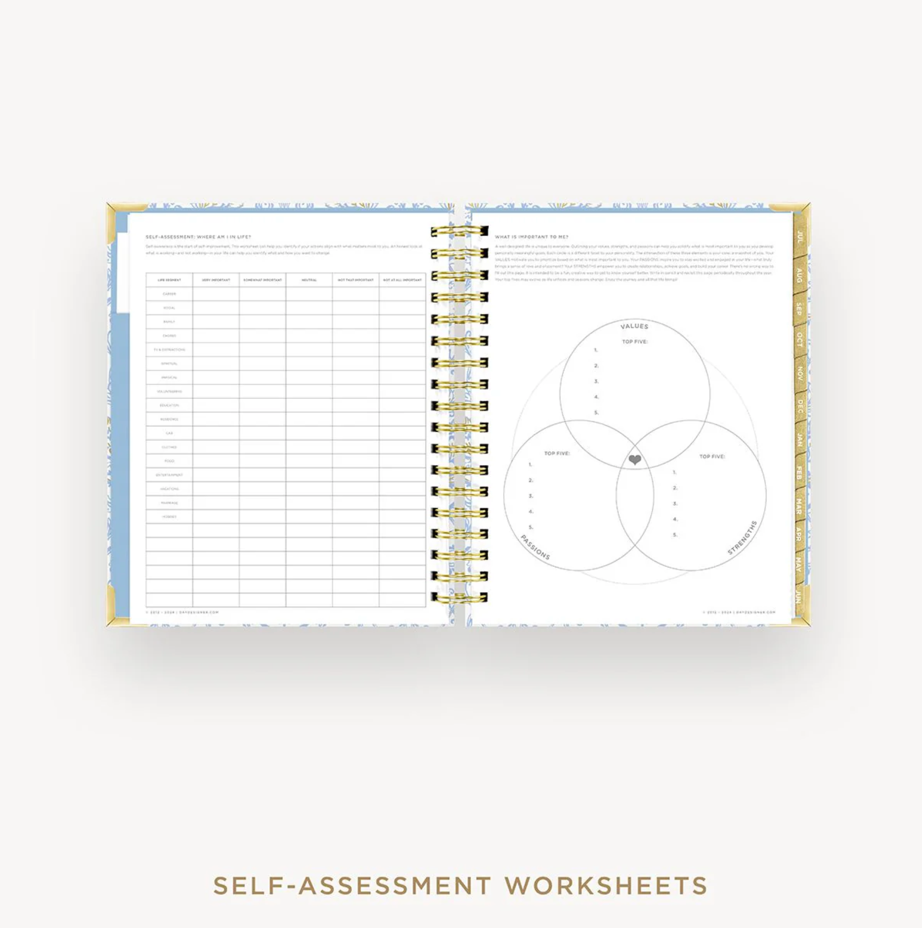 The complete daily planner for goal-setting, productivity and organization. Includes monthly calendar, daily schedule, to-do list and gratitude. An elegant block print pattern in a sophisticated large scale. Its soft coastal hues with touches of gold foil enhance your light and airy aesthetic.