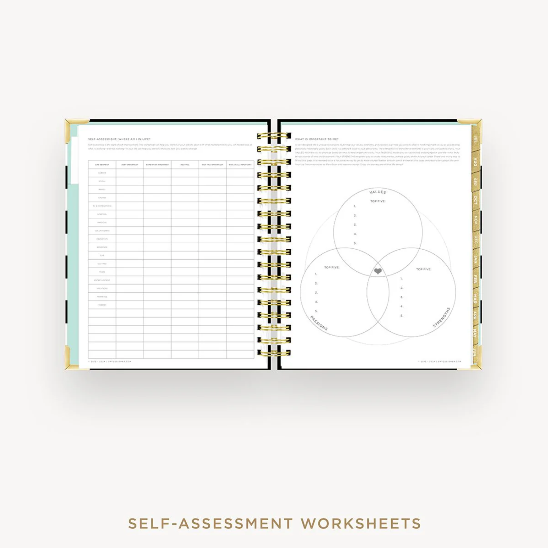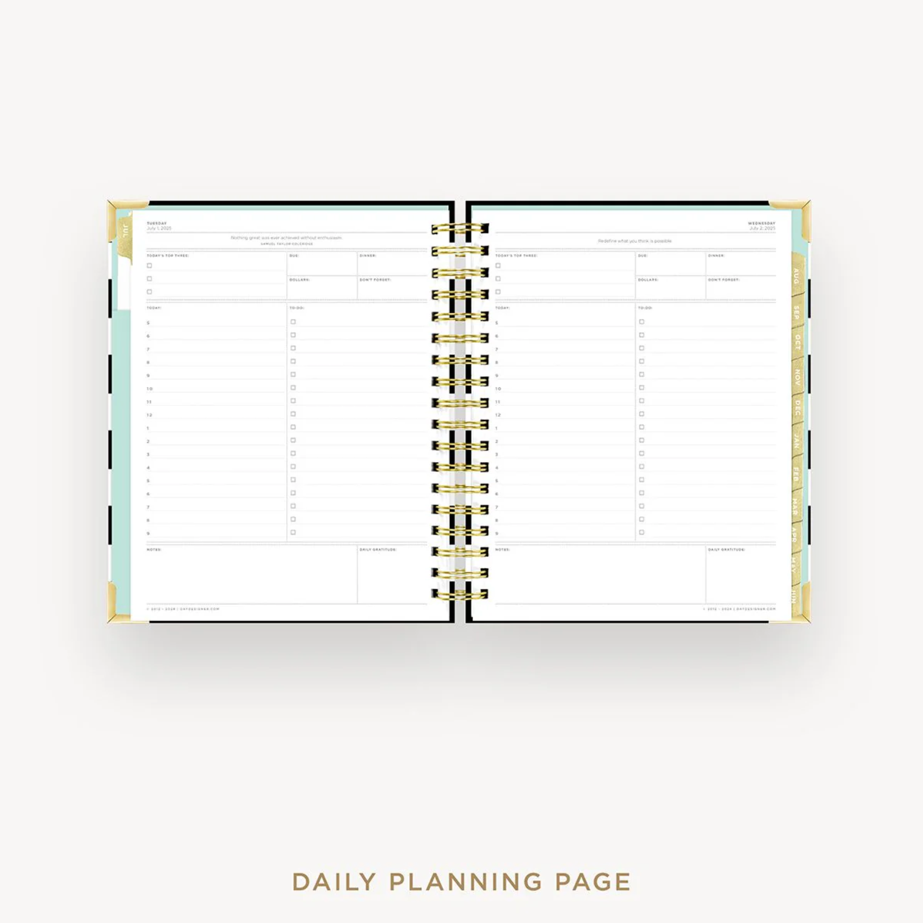 The complete daily planner for goal-setting, productivity and organization. Includes monthly calendar, daily schedule, to-do list and gratitude. Iconic black stripe cover is chic, sophisticated, and fits any setting.