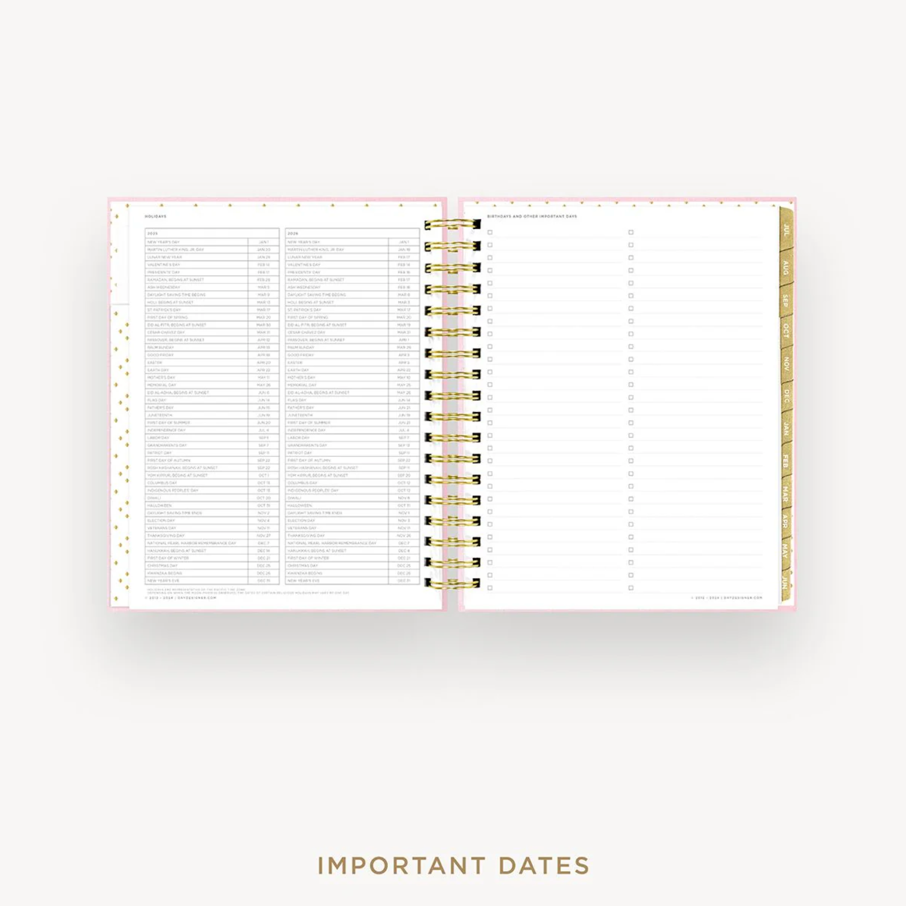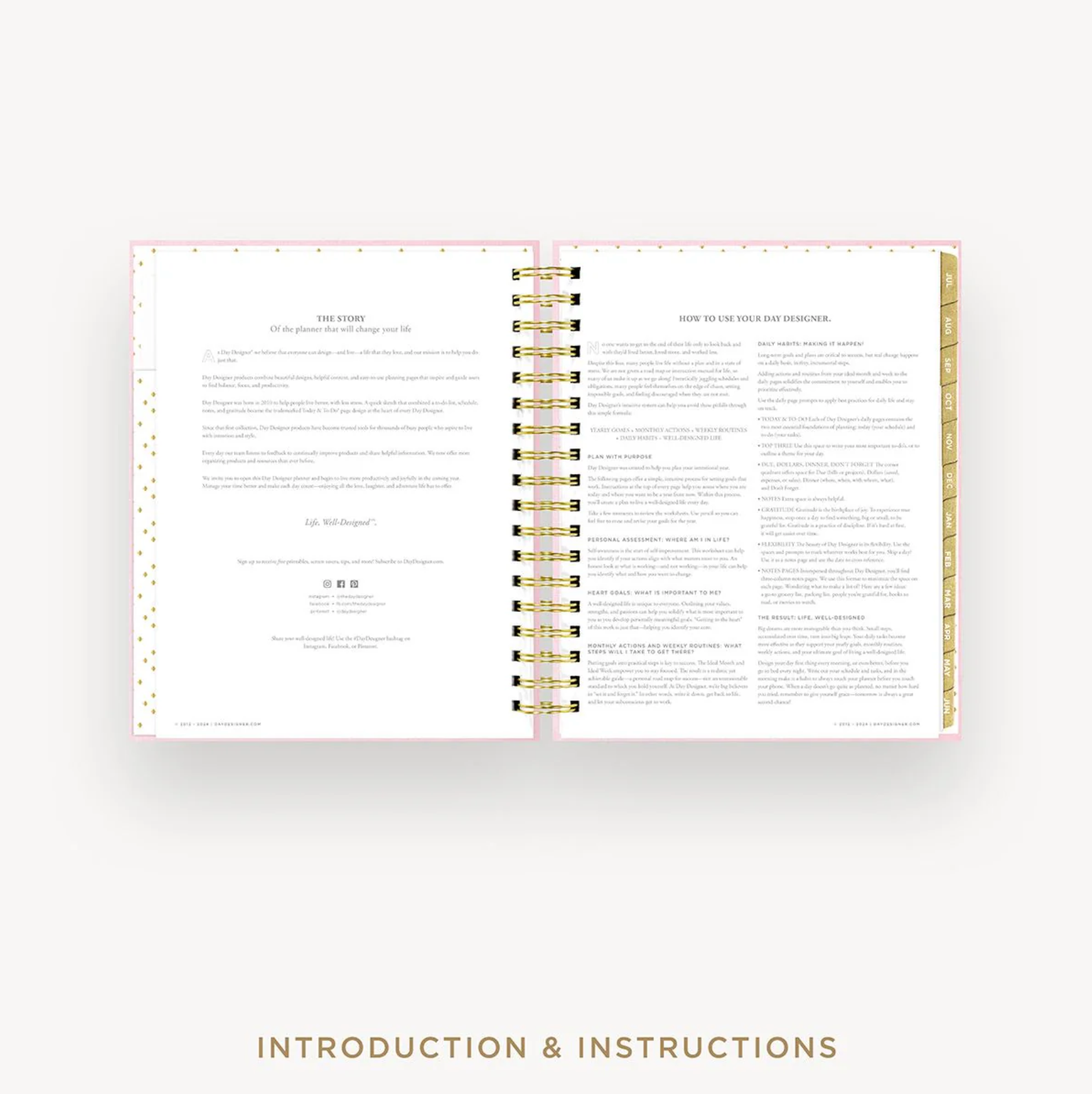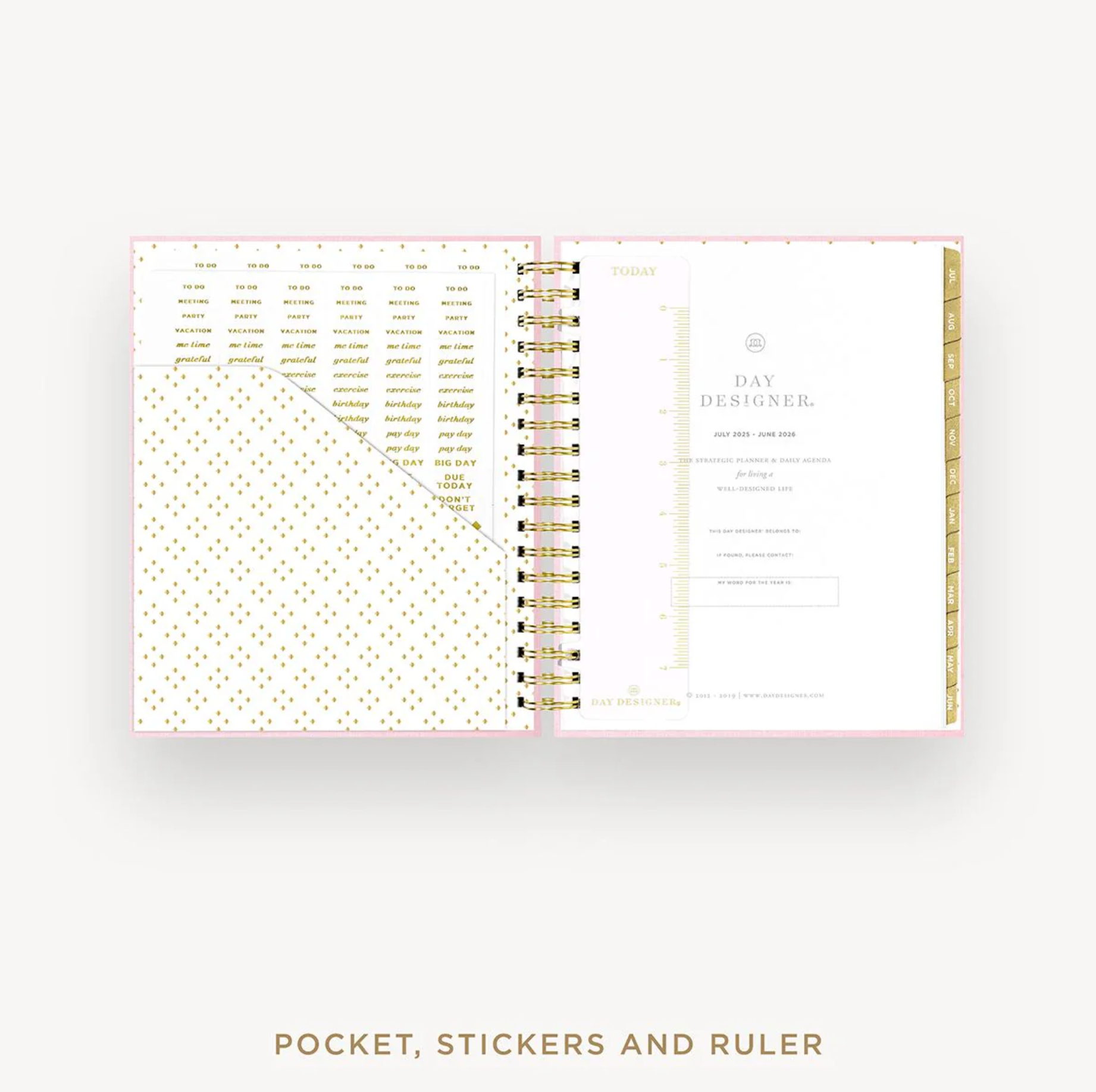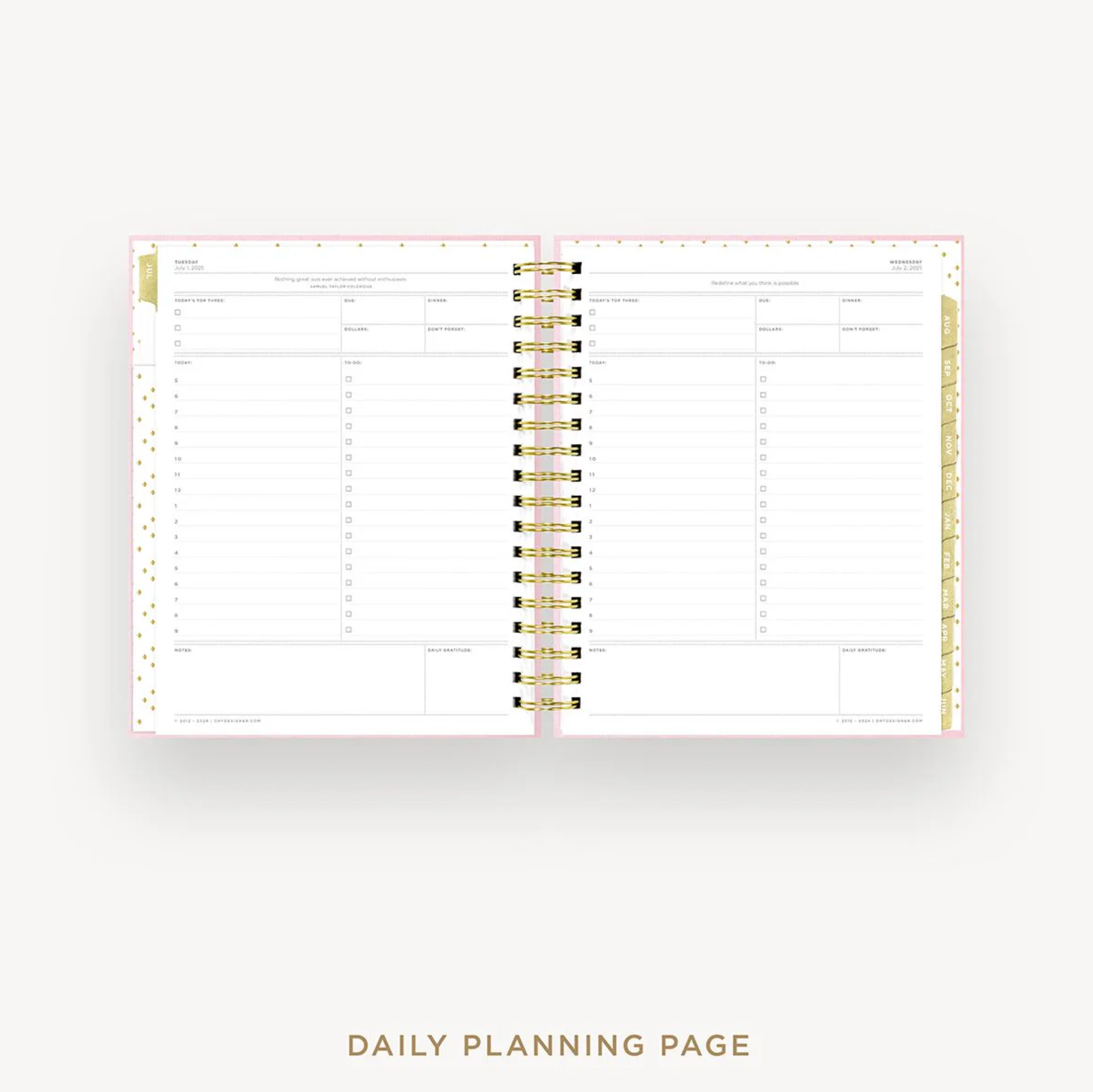 The complete daily planner for goal-setting, productivity and organization. Includes goal-setting, monthly calendar, daily schedule and to-do list. Linen-finish fabric cover in a timeless, soft pink hue!