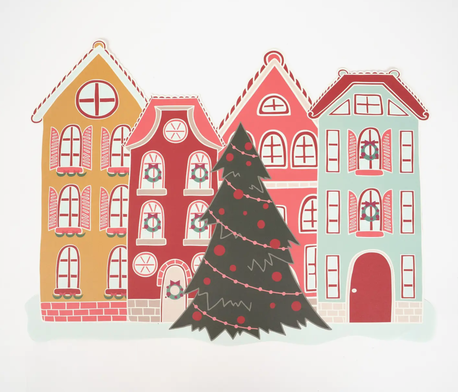 Welcome the winter holidays with these festive holiday village placemats! These placemats add an instant charm to your winter table with a holiday village design and pastel-like colors. Enjoy a cozy and merry Christmas dining experience with these festive placemats. Make your table top an outstanding lay out with our uniquely designed placemats. We have designed our placemats so they can be the extra touch that your dinner table needs for any special occasion. Also forget about having a dirty table afterwards, our placemats are 100% recyclable, making it an effortless cleaning plan. Pack of 12 Measures 17” X 12.73 Made from paper Made in China