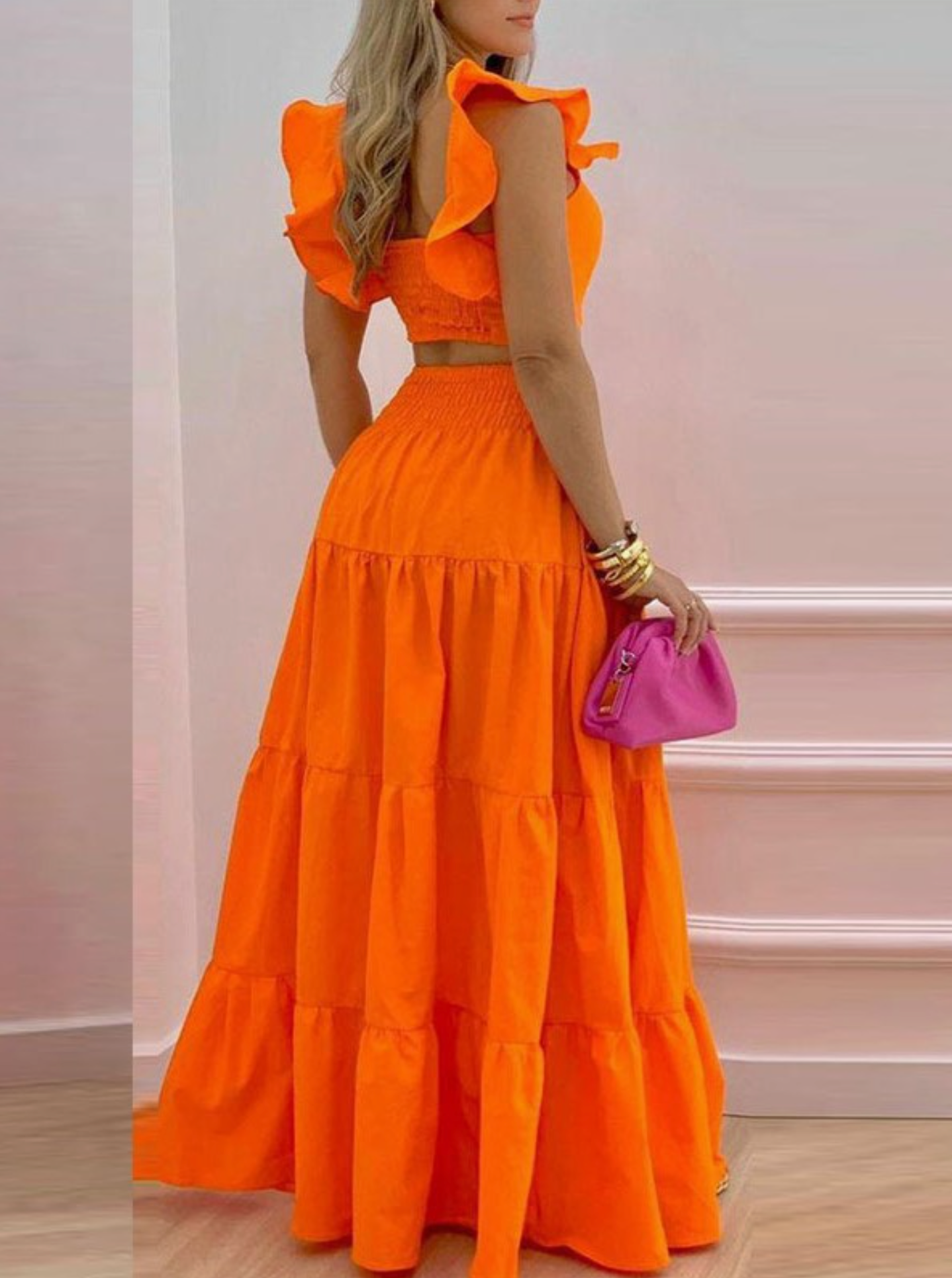 LOTUS VEST MID-RISE LARGE SKIRT LONG SKIRT TWO-PIECE SET_RCXL00692