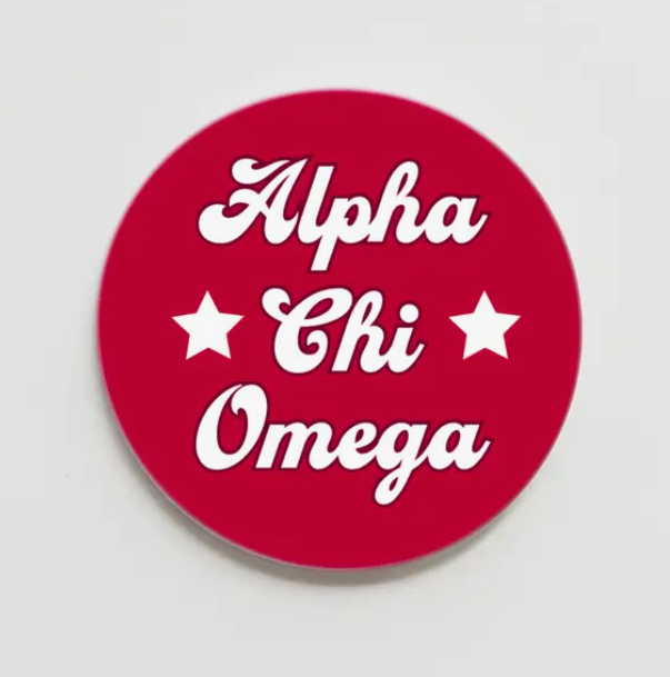 2.25 inch pin-back button. Show off your greek affiliation with this simple design with a retro vibe.